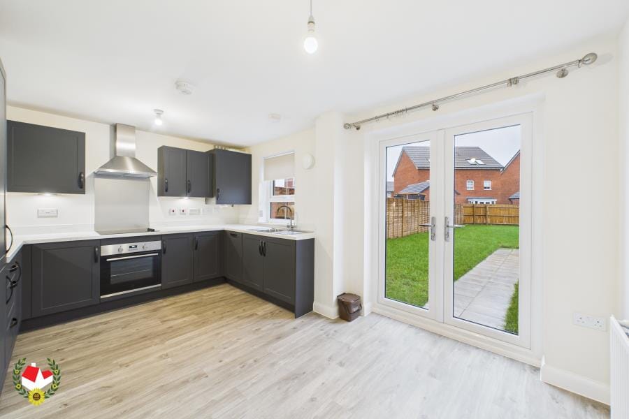 Welcoming Entrance Hall, Downstairs Cloakroom, Good size Lounge and an ample Kitchen Diner with French Doors to rear Garden. The high end kitchen includes fitted appliances, fridge/freezer, washing machine and dishwasher.