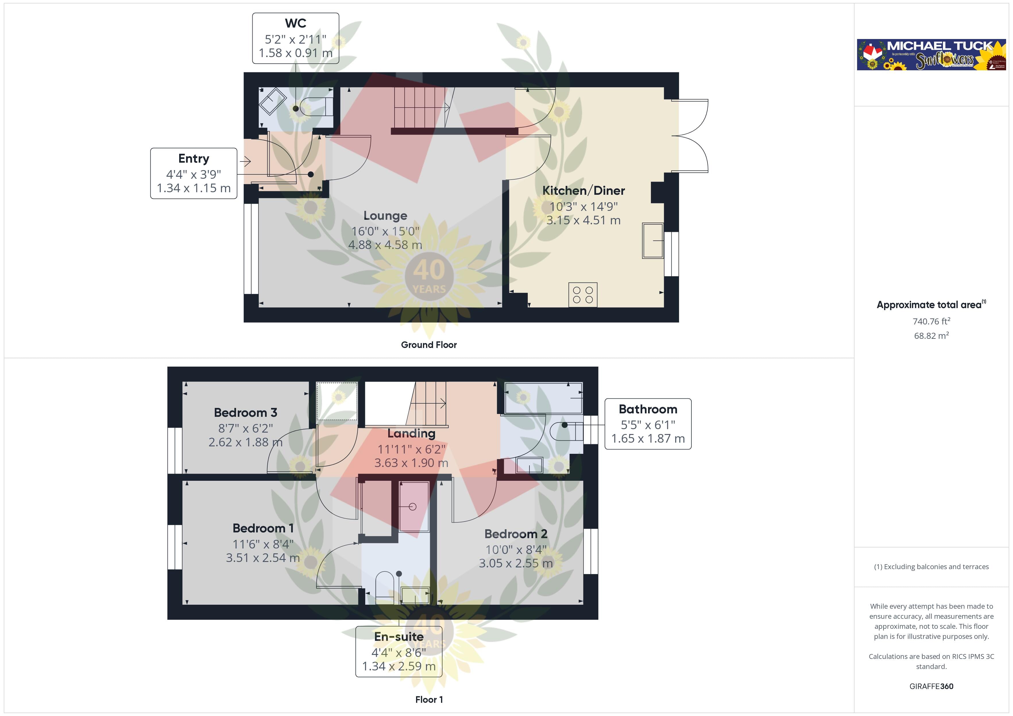 The first floor has Two Double Bedrooms, with Ensuite to the Master Bedroom, Single Third Bedroom and a Family Bathroom with shower over the bath. There are also fitted wardrobes to the two larger bedrooms.