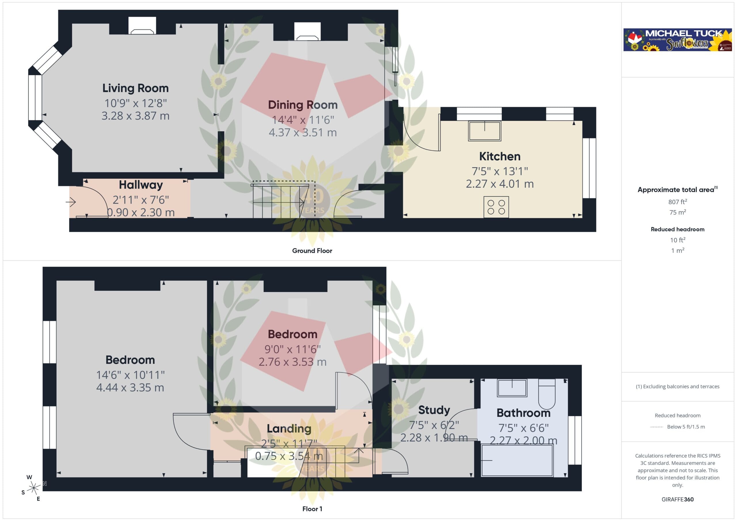 Study 7' 6" x 6' 3" (2.28m x 1.90m)