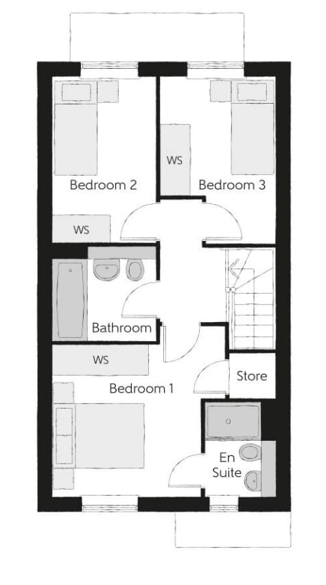 906 sq ft - The Turner has three bedrooms – one of which has an en suite – a modern family bathroom, an open-plan kitchen and dining area, and a separate living room.