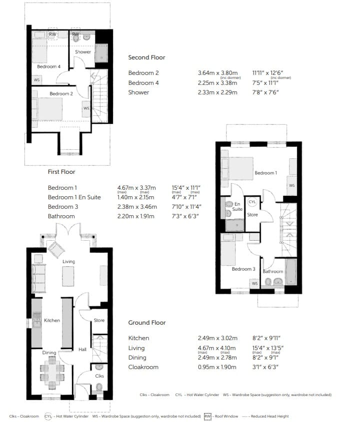 The WHEELWRIGHT is a 4-bedroom home that boasts an open-plan flowing feel. A spacious living room with beautiful french doors to a rear garden, a separate dining room, and a fitted kitchen with integrated appliances. On the first floor you will find, Bed 1 with an en suite, Bed 3, and a contemporary family bathroom. On the second floor you will find two further bedrooms and also a lovely shower room.