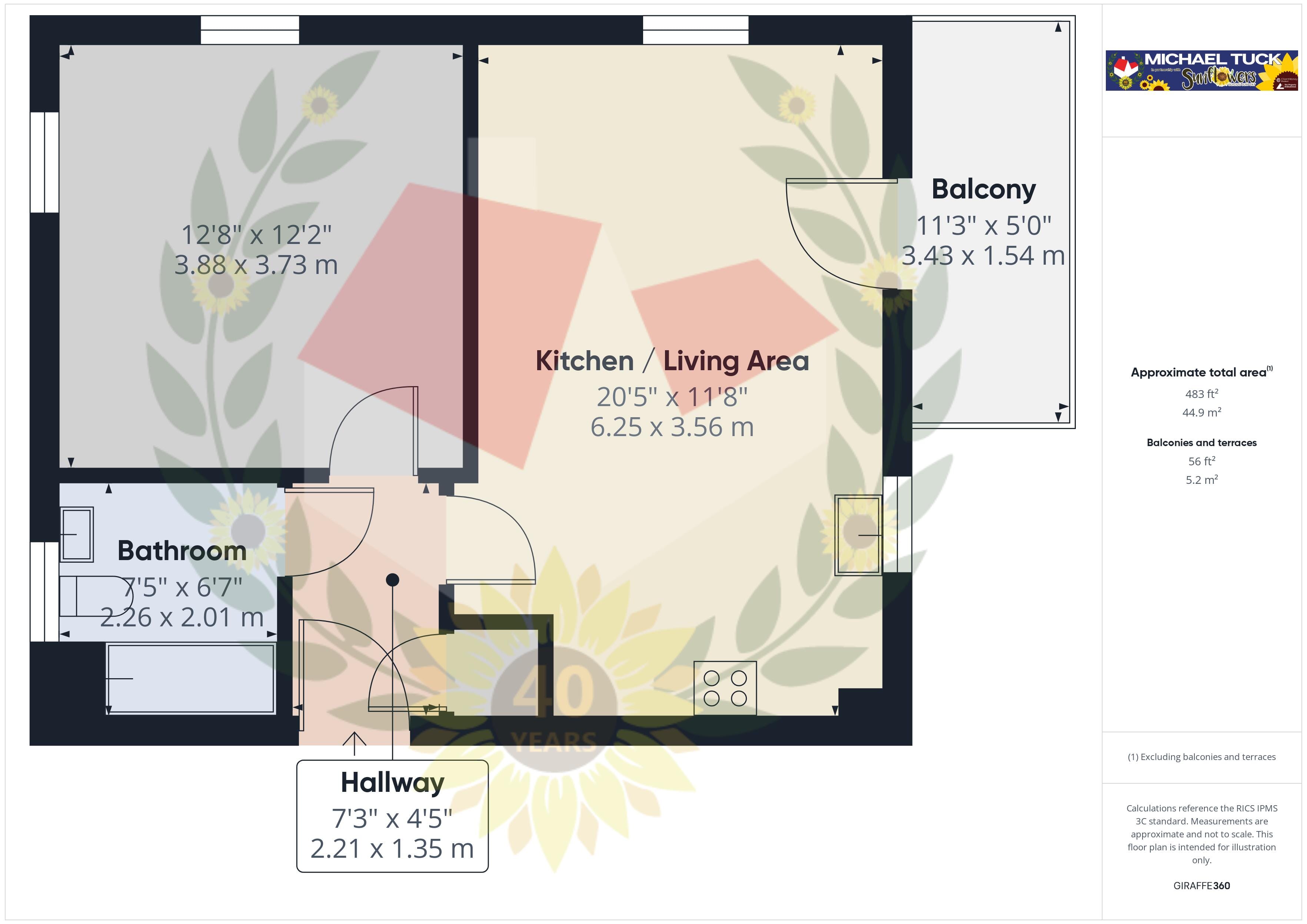 Entrance Hall, Open Plan Kitchen/Living Room with fitted appliances and the apartment also has its own private balcony.