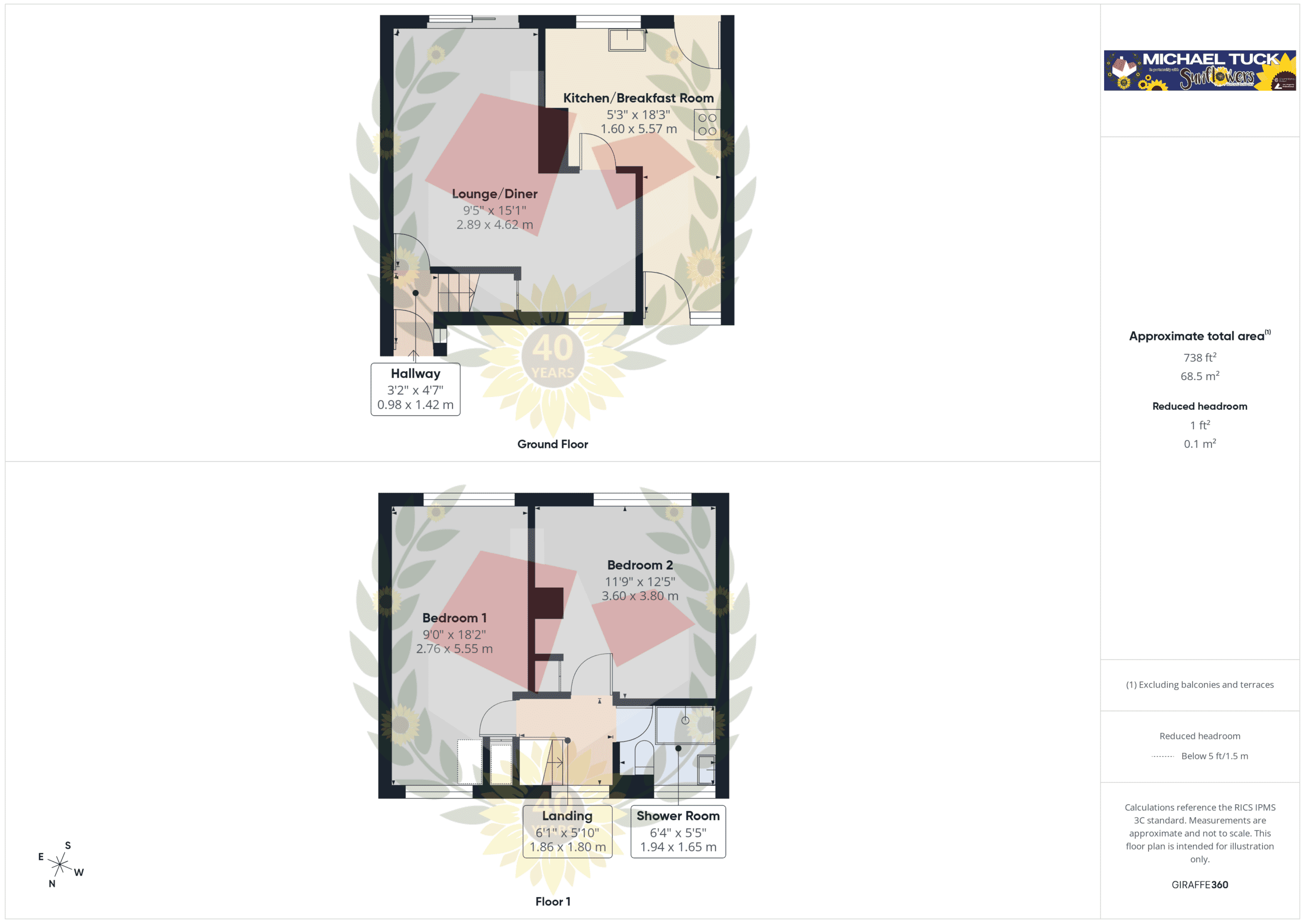 Upstairs, the first-floor landing leads to two well-proportioned double bedrooms and a shower room.