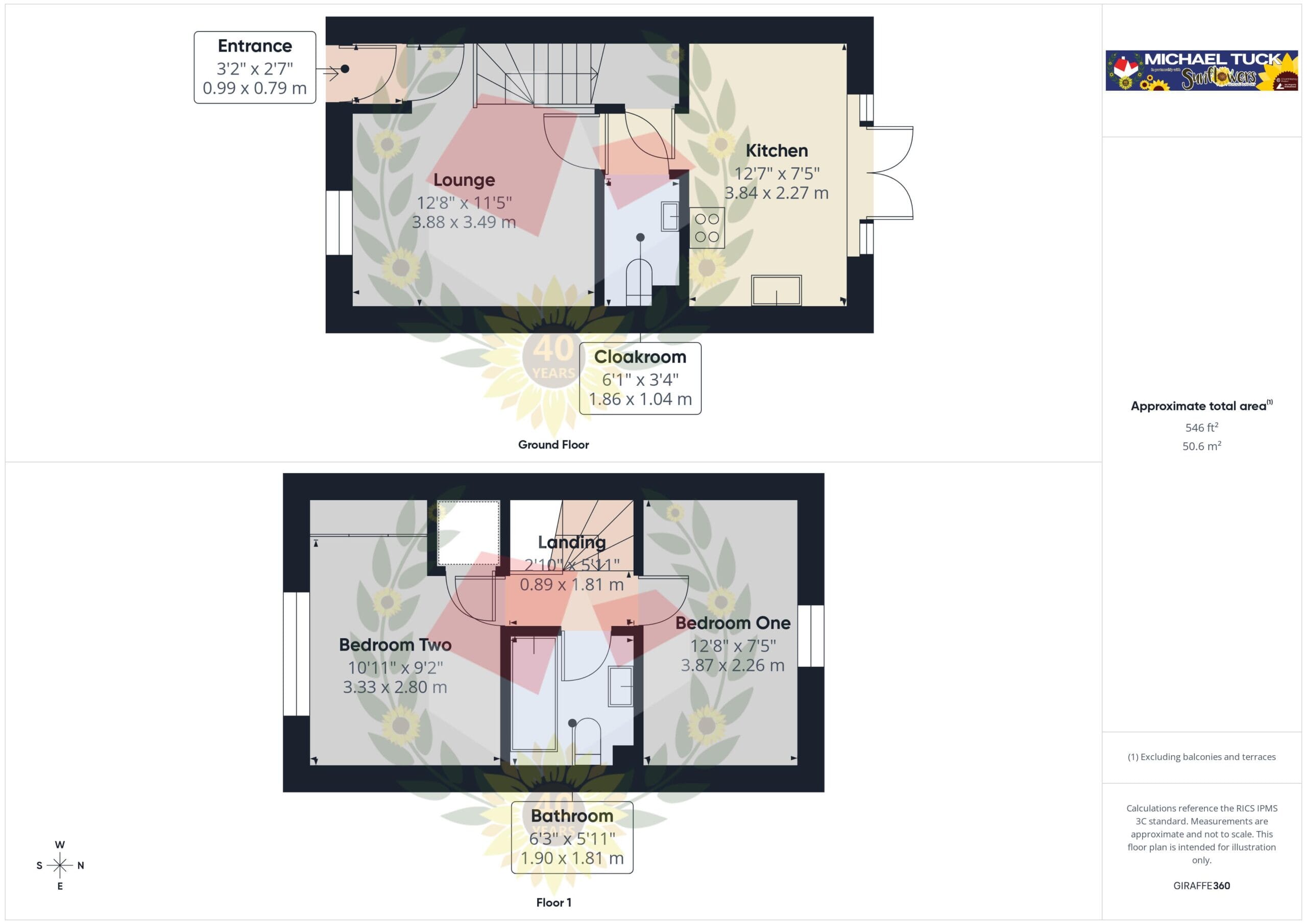 The first floor has Two Double Bedrooms with wardrobes/storage cupboards and a Family Bathroom with shower over the bath.