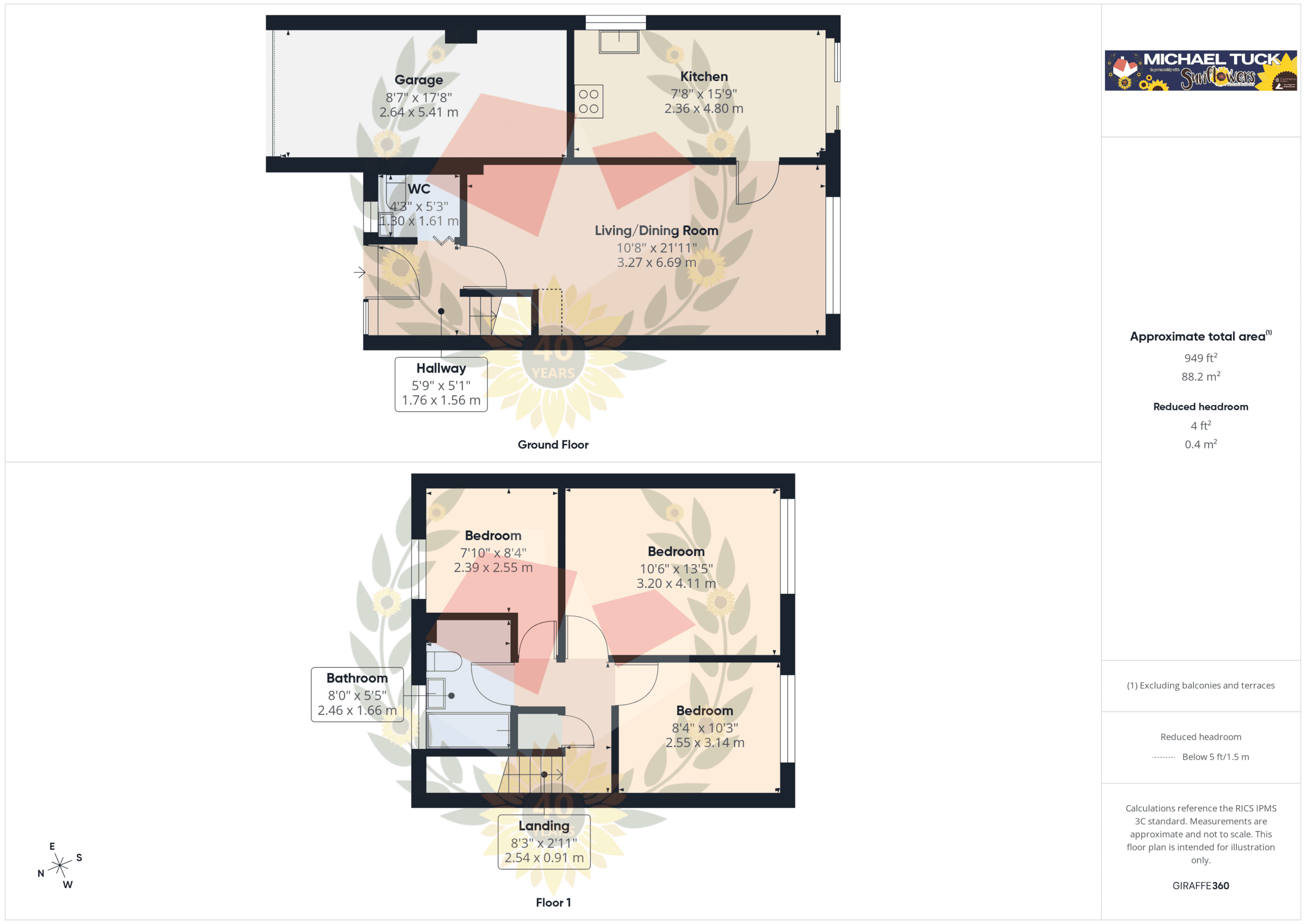 Landing 8' 4" x 3' 0" (2.54m x 0.91m)
