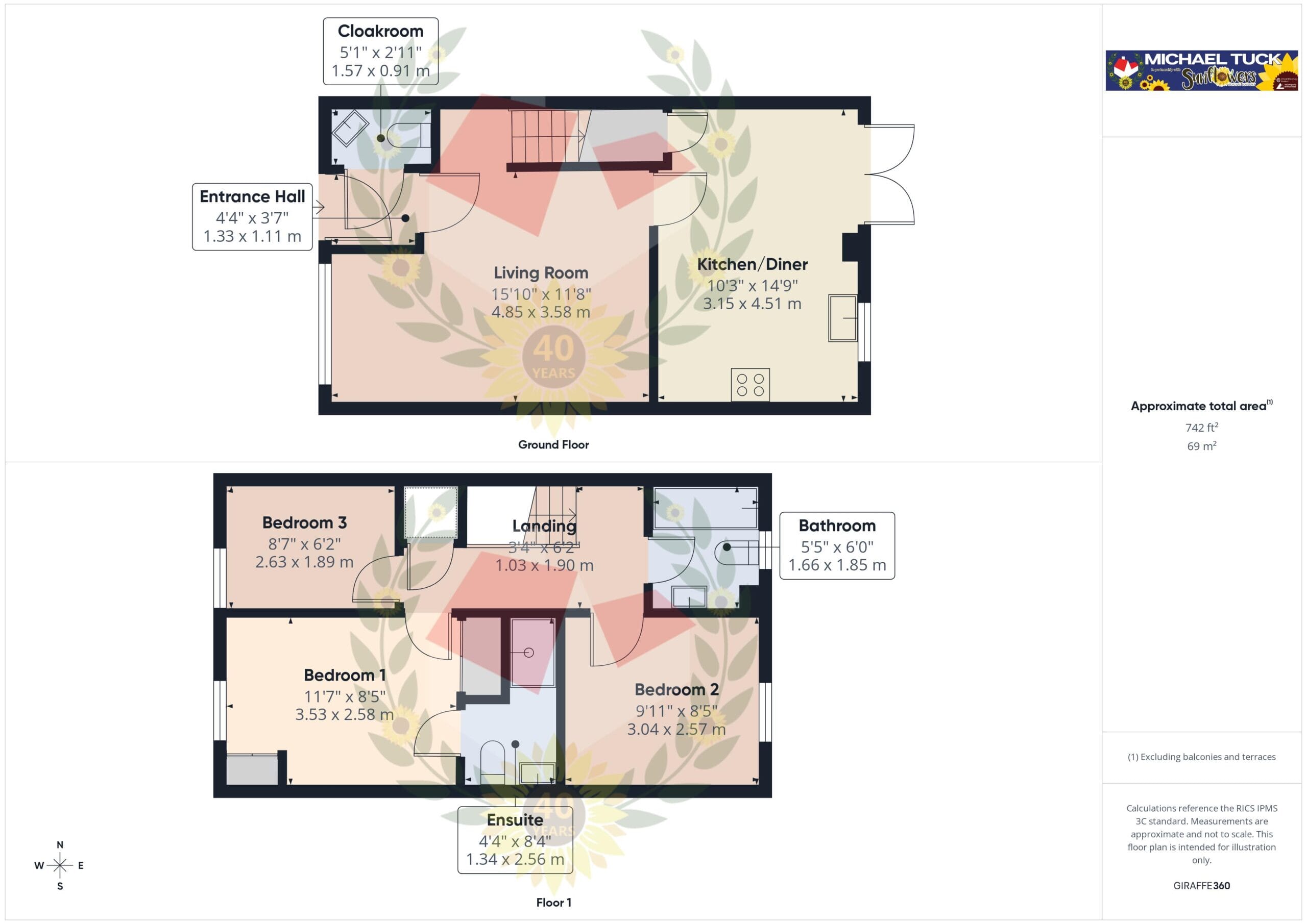 The first floor has Two Double Bedrooms, with Ensuite to the Master Bedroom, Single Third Bedroom and a Family Bathroom with shower over the bath. There are also fitted wardrobes to the two larger bedrooms.